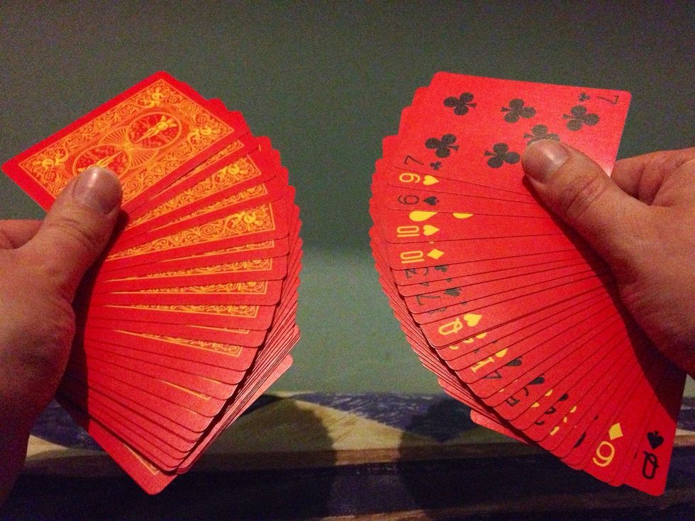 Finally spread with your thumb using the motion in step 2. Takes a bit of practise to get the right pressure on the cards.