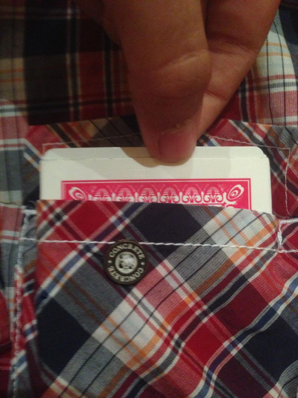 While you're are talking to the audience. Insert the cards back in the box but leaving their card taller than any other.