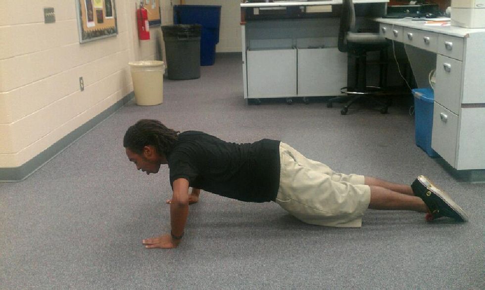 And you just bend your elbows and you go half way to the ground and then back up and repeat it over however many times you want and that's how you do a push up