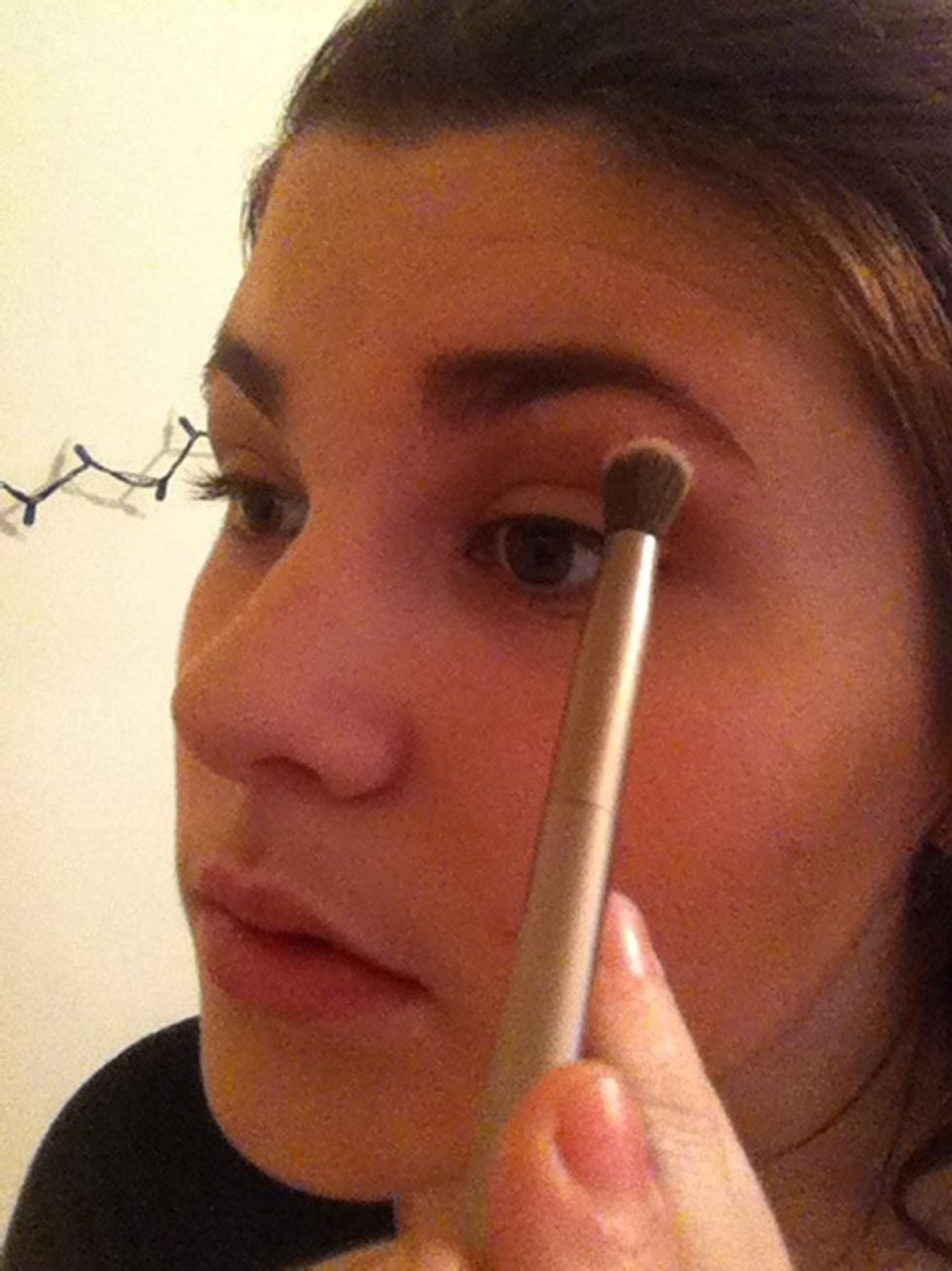 Use a blending or fluffier eye shadow brush and get your light matte brown shade. I'm using "tease" from my naked 2 pallette