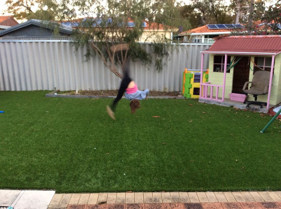 Now instead of going straight into the cartwheel, bend down so you can jump higher in the cartwheel.