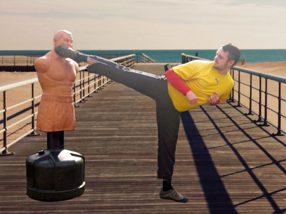 After you hit the target, immediately snap the leg back in. This is to stop the opponent catching the leg, to speed up the finishing phase neatly, and to keep your balance as you spin round.