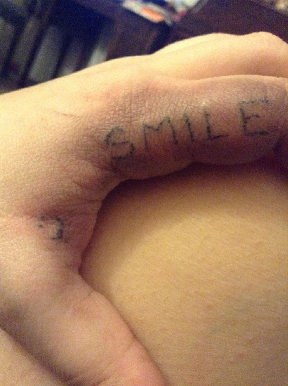 Everything is on my left hand except the trio of dots on my inner right wrist. Square and lightning bolt are on my wrist. Smiley face is in between my thumb and pointer finger. Dots by my cuticles.