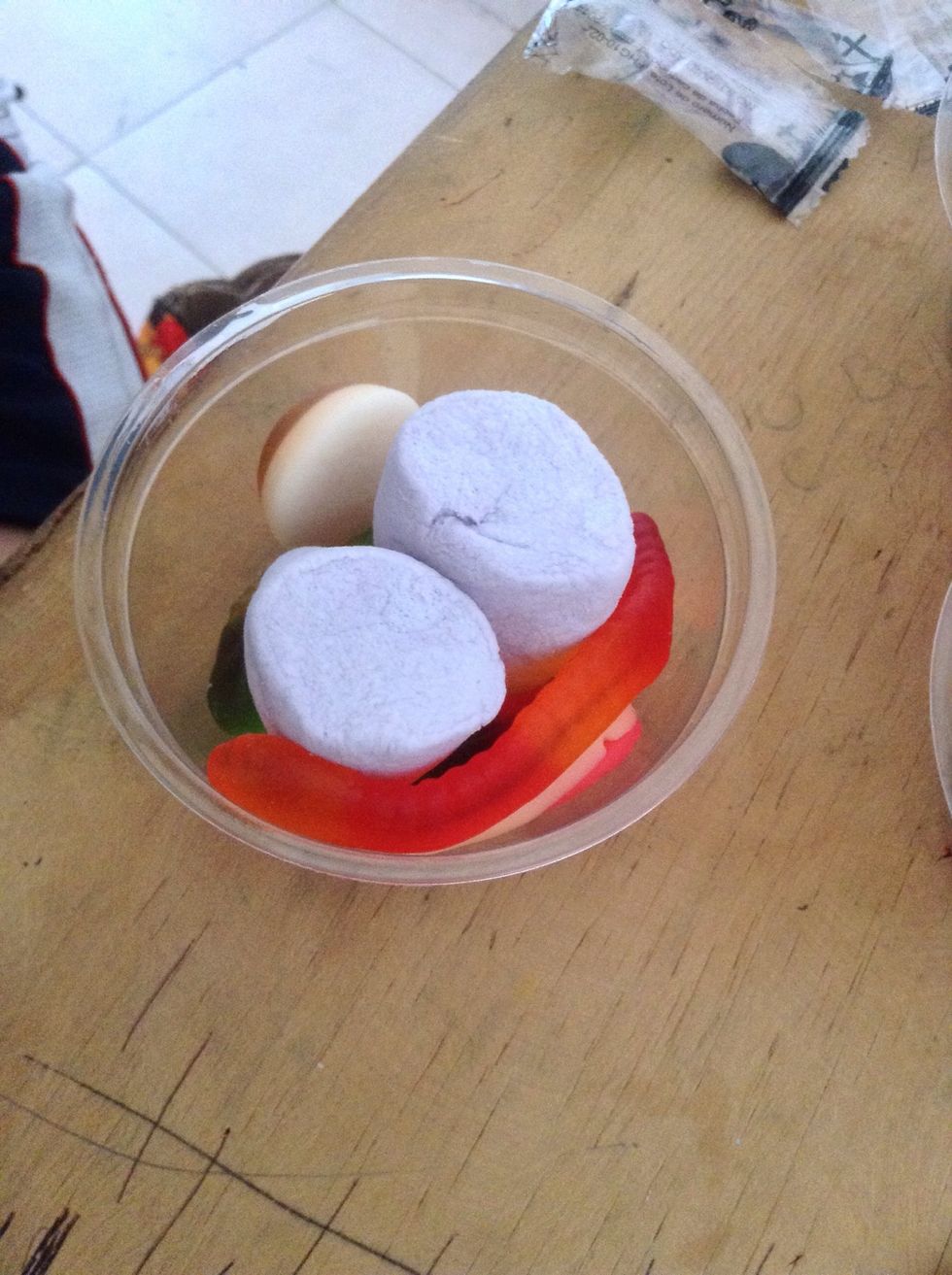 First put the candycup In the container