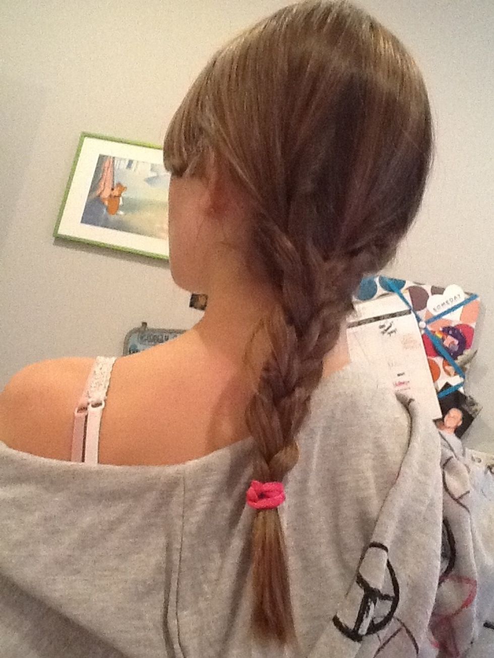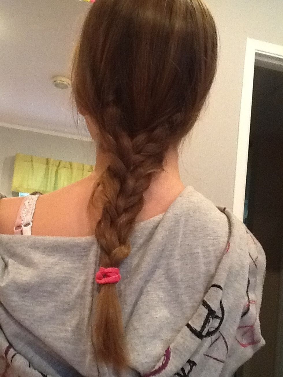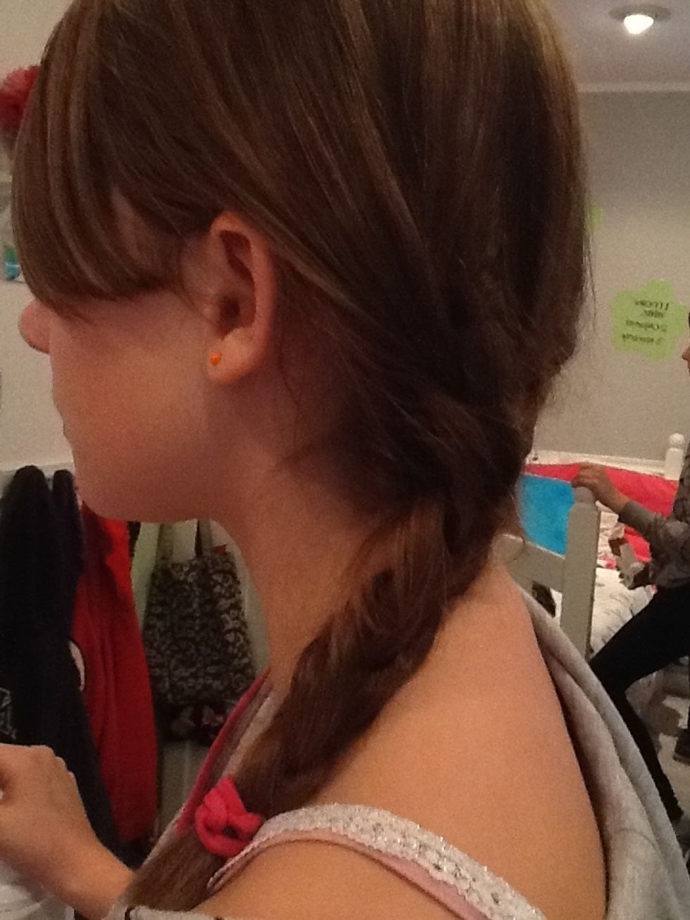 braid all three pieces together. final braid should look like this. sorry this is a little messy. I had to do it really quickly!