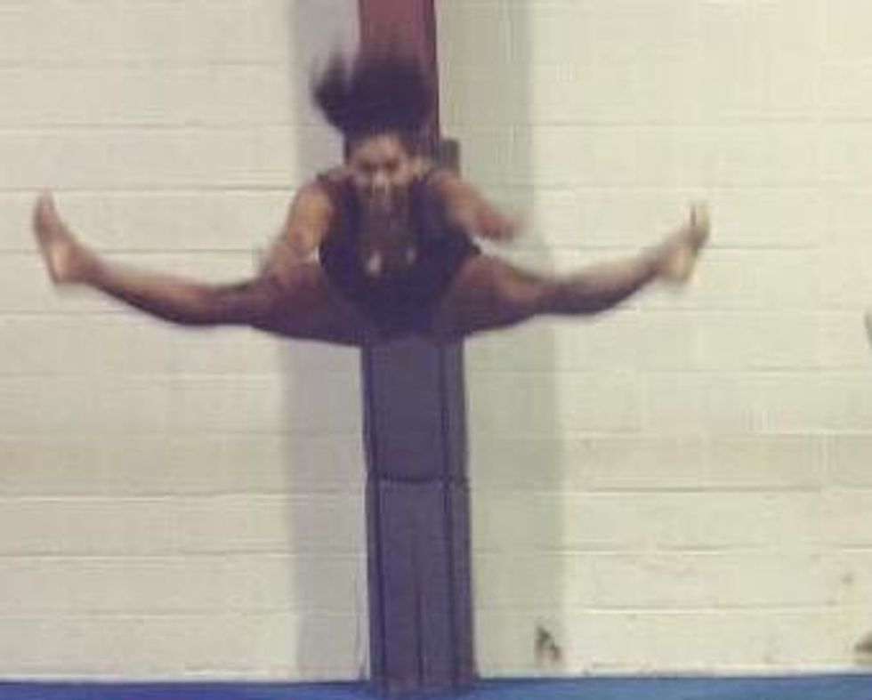 Count 6 is to jump off the ground and start to bring your legs and your arms up to meet in a T motion.