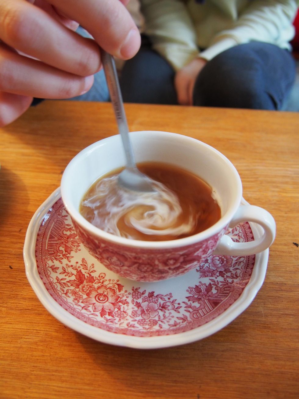 This is the first cup of the tea. This one should not be stirred, but drinken through the cream clouds.