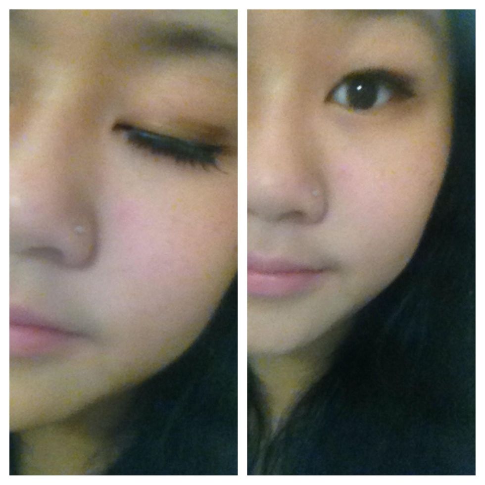 Apply eyeliner to the top. Wing it out if you want to. This will create an illusion of having bigger eyes !