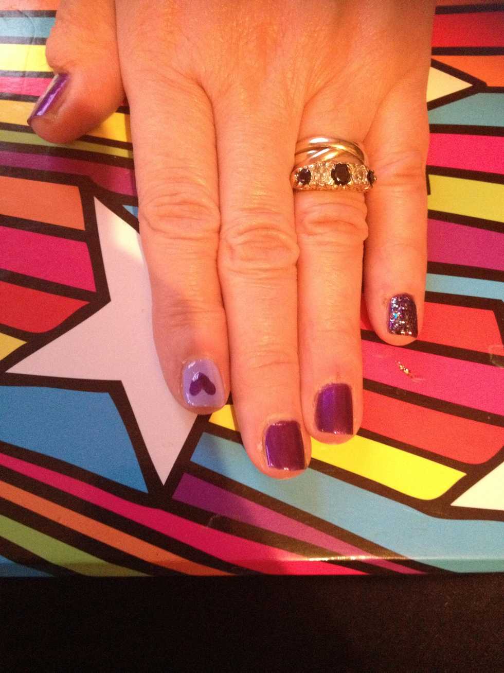 Apply a top coat and there you have a lovely purple manicure. <3