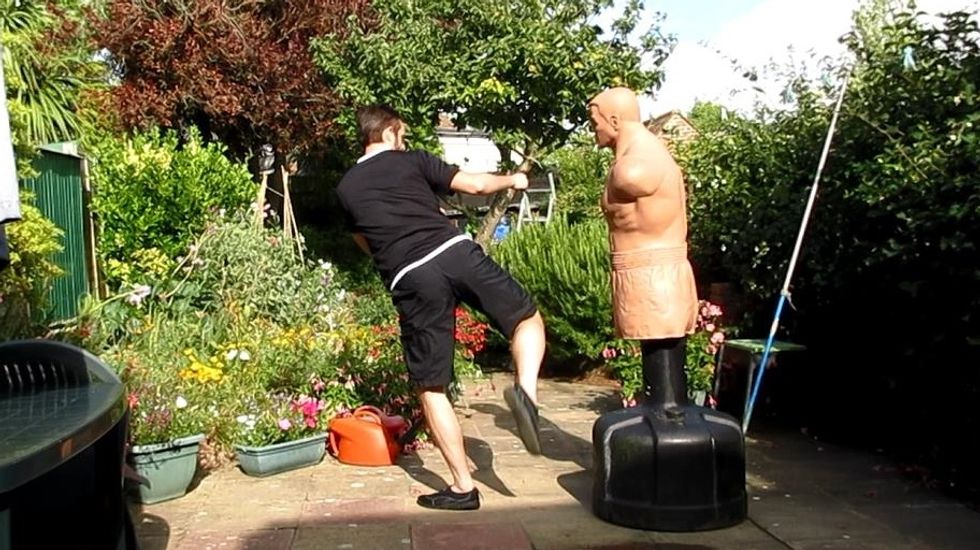 As both feet land to the ground make sure your weight is centred, the knees slightly bent and apart, and the chest is elevated. Once again, this posture automatically maximises balance, and posture.