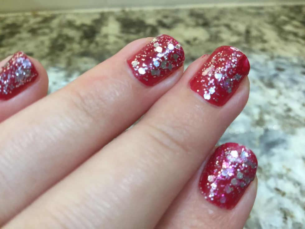 I got a white glitter โจ nail polish and a red one. It's a nice Christmas color.๐ ๐ฒ