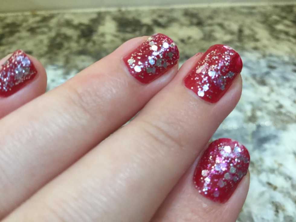 When the nail polish dries, start putting the sliver glitter nail polish on.๐