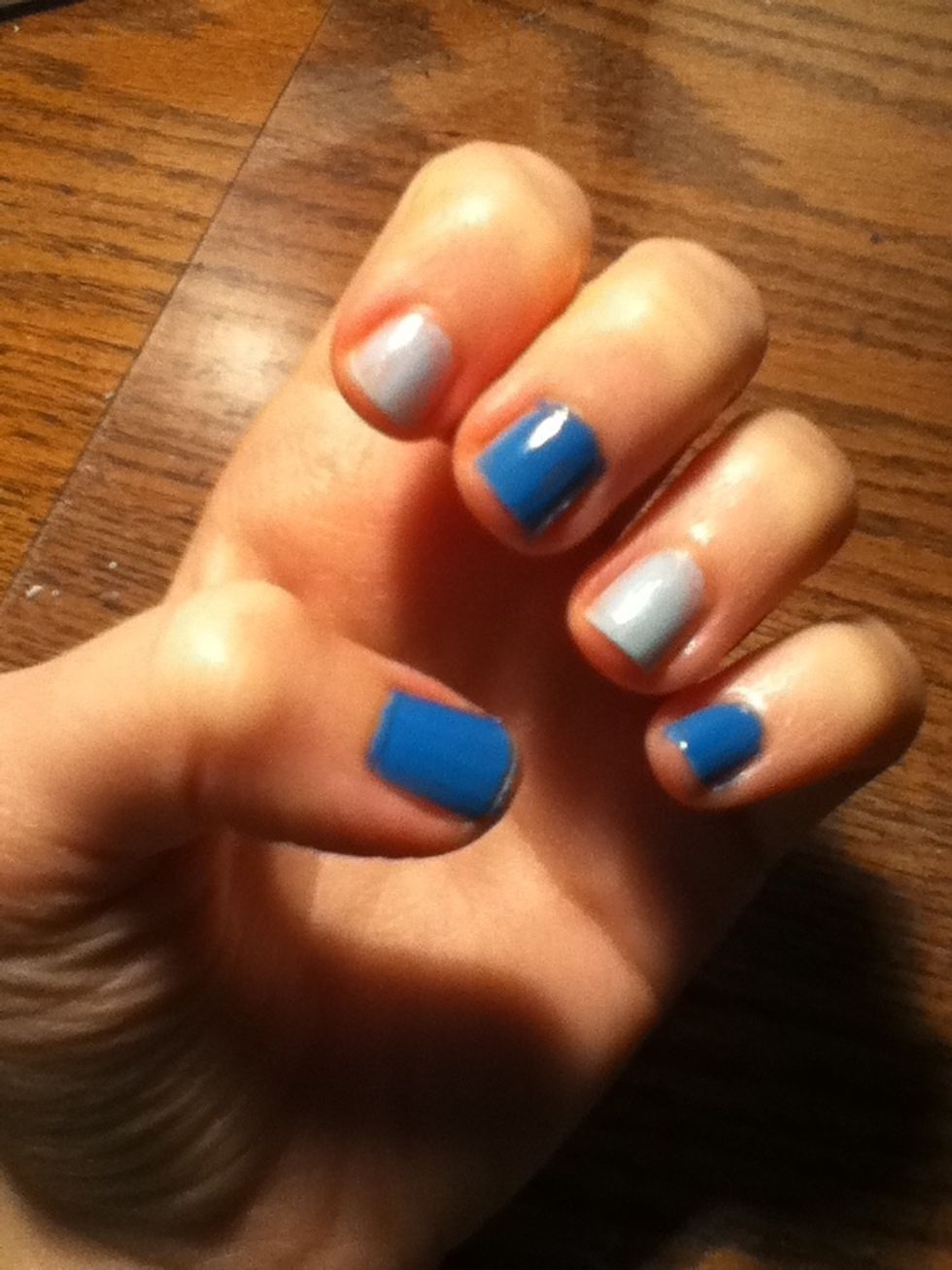 Now, paint your index and ring fingers with the lighter shade of blue. Be sure it is completely dry before moving on.