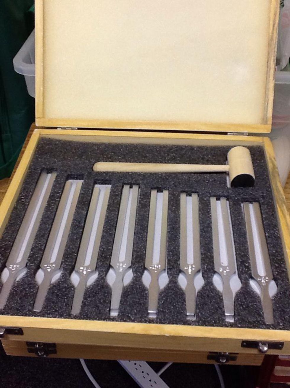 What you do is you hit the mallet against the tuning fork and put it against the salt and the salt goes everywhere. But it's really cool to see how the salt flys up because of vibrations.