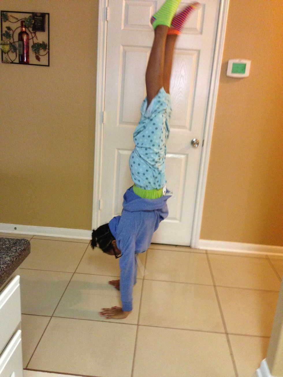 Once you have mastered the transitions go in front of your door or wall and kick your back leg up all the way. Kick your other leg up halfway.