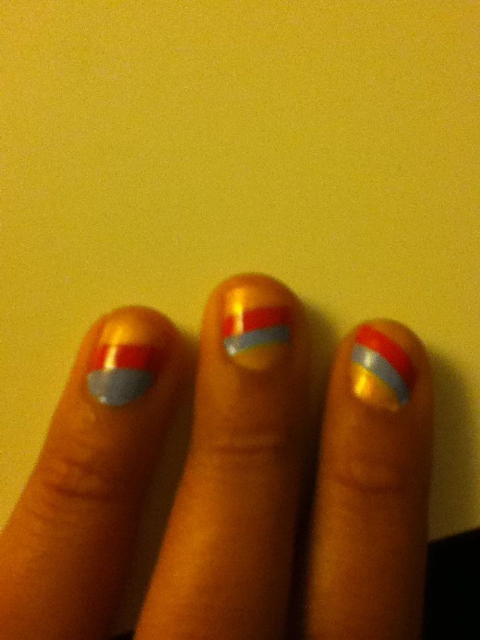 Carefully place the strips on your nail in the pattern that you chose. Plaid or stripes are easiest. I chose diagonal stripes.