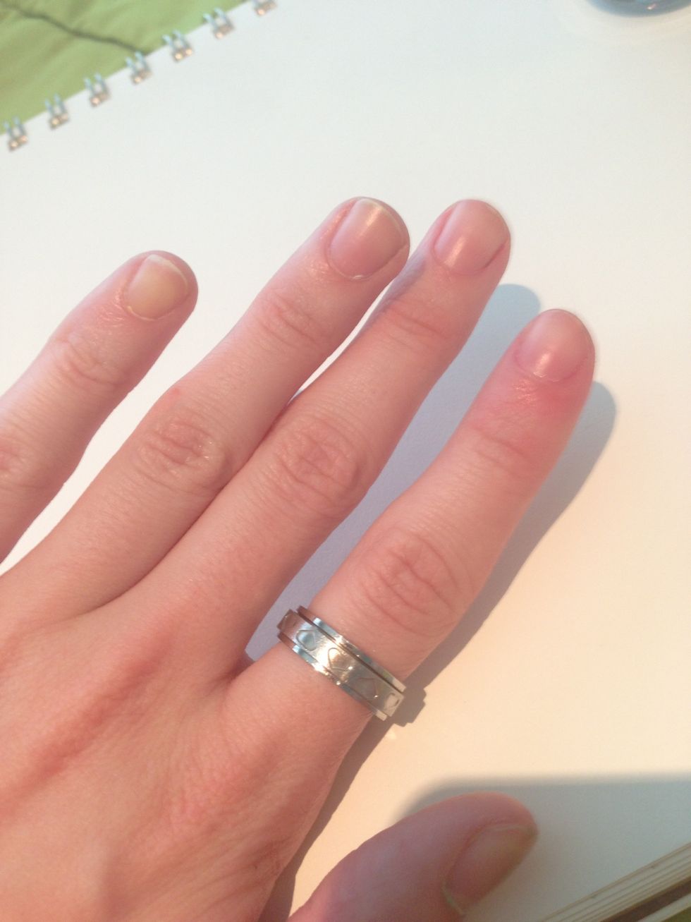 Place your first piece of striping tape on your nail vertically about a quarter down your nail. (If that makes sense? Lol)