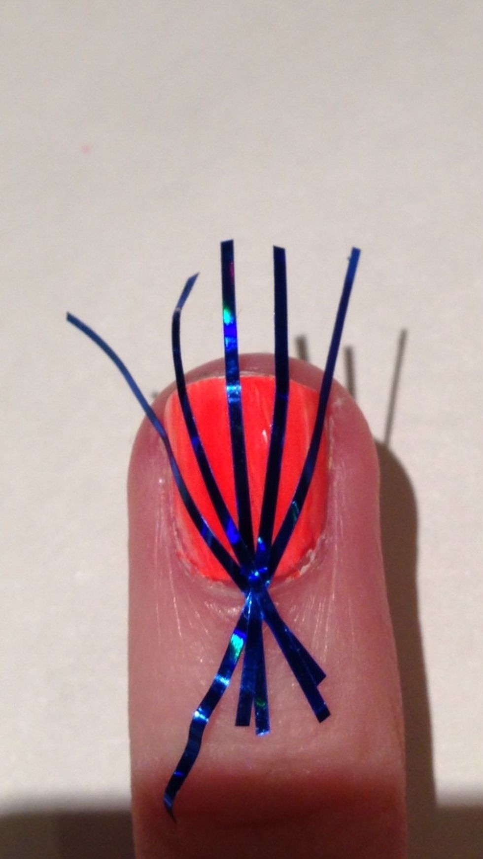 For this design you need about 5 strips of tape. It will depend on the length of your nail.