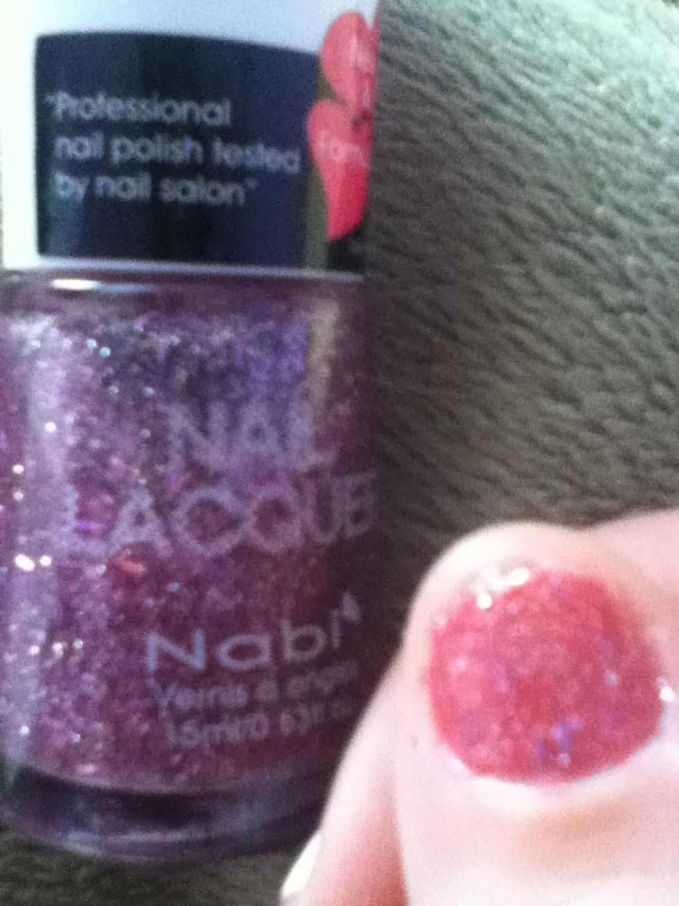I thought this pink glitter would be cute On the tumb.the pinky I left it blank cause i thought it would be to much already.