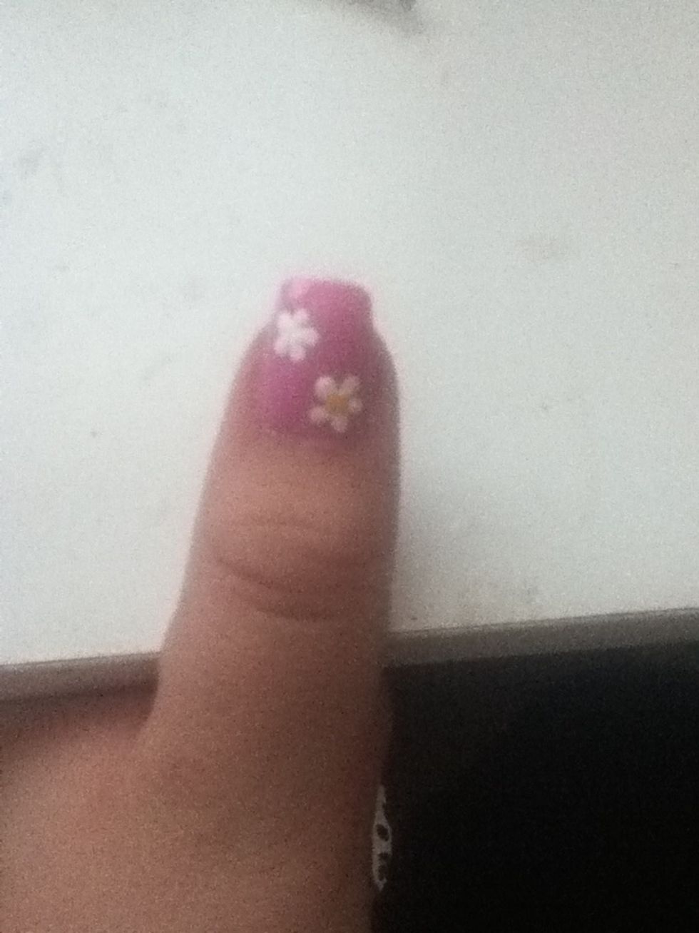 Make 5 dots forming a flower shape. My finger looks fat because I'm pressing it on the table 😂 You can make the dots with a toothpick or dotting tool.
