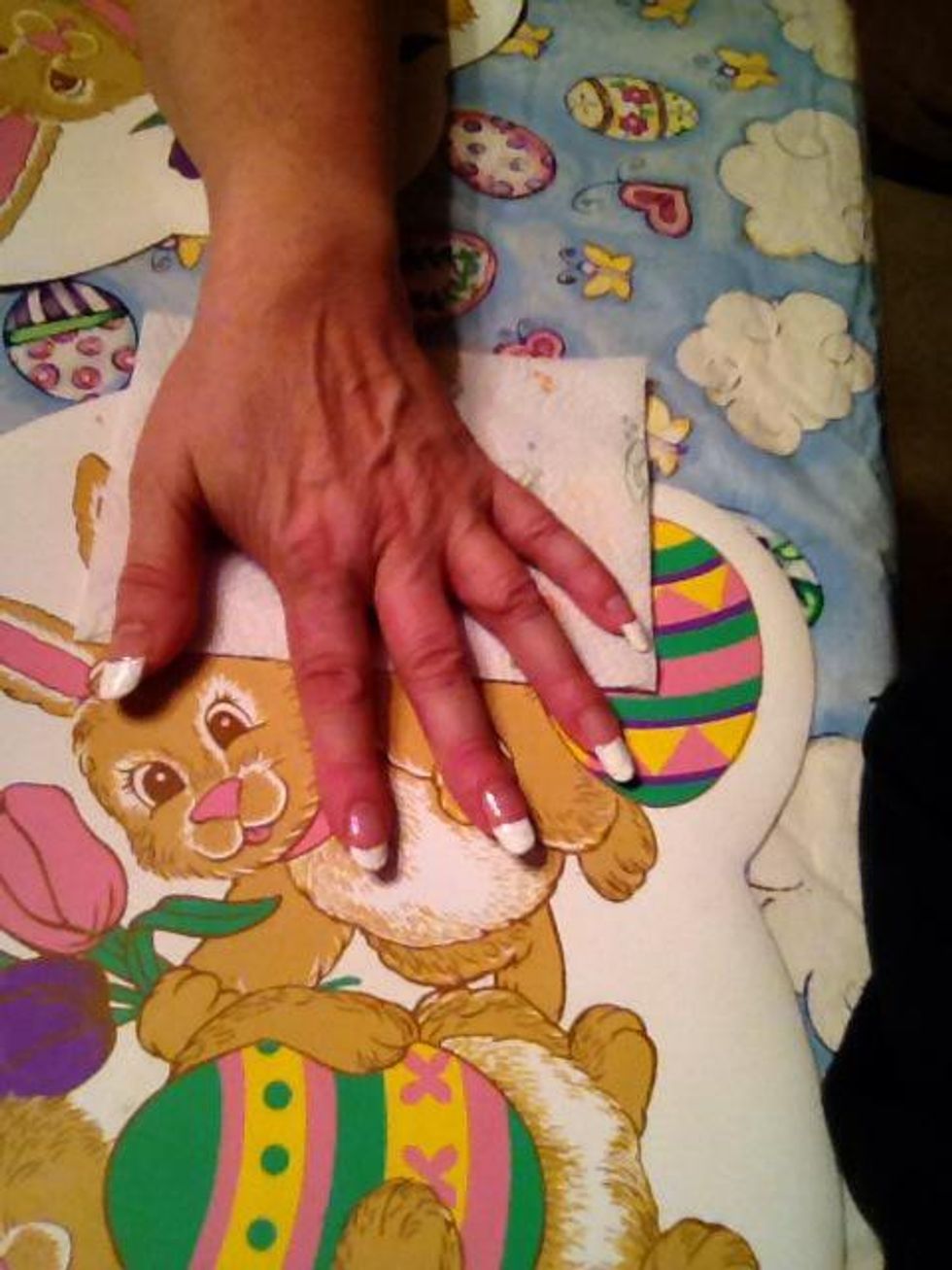Find a napkin or something you can use to protect the surface from any nail polish that has spilt.