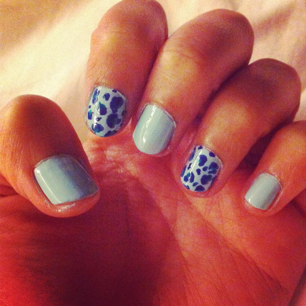 Then with your bobby pin (or a dotting tool) dip the ball tip into the polish and randomly create some dots or splashes (as you can see it doesn't have to be perfect) on your chosen accent finger