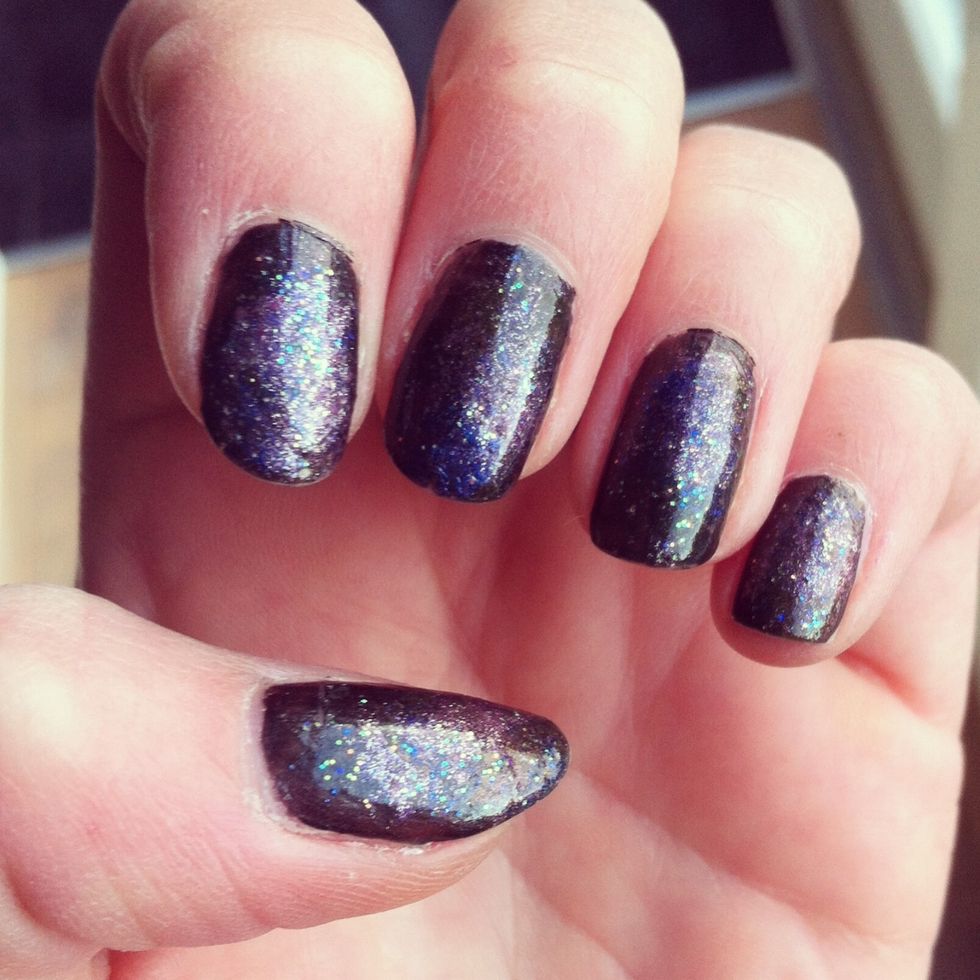 For my nails I used several colors: green, pink, purple and blue. You could also use only green and purple. Put some of the nail polish on the sponge and carefully pat it on your nails.