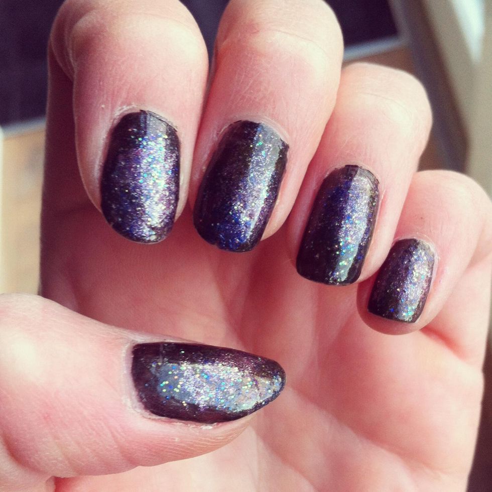 Add a see-through nail polish with glitters.