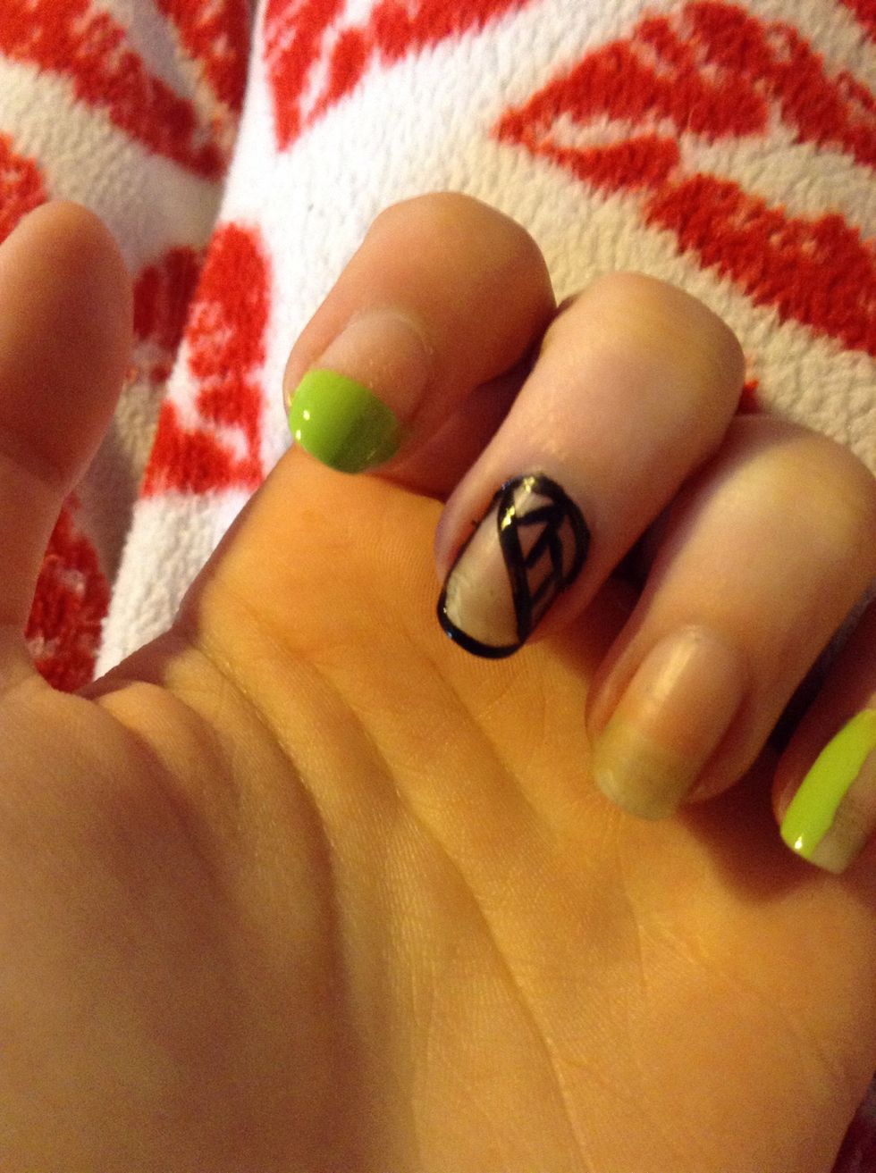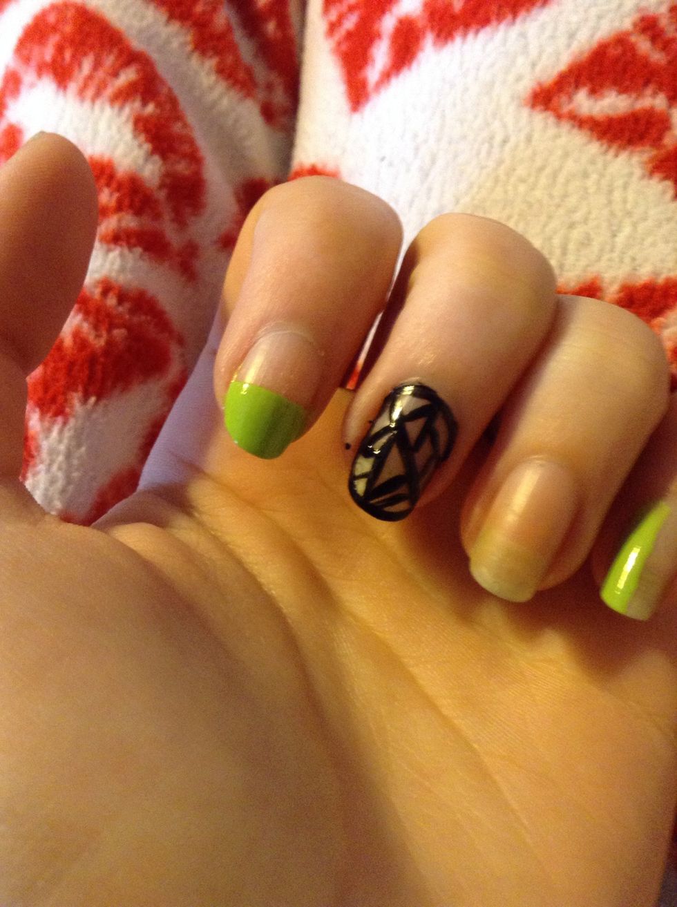 Dip a toothpick in and paint two sections of random line on the middle and ring finger, then one on pointer and pinky
