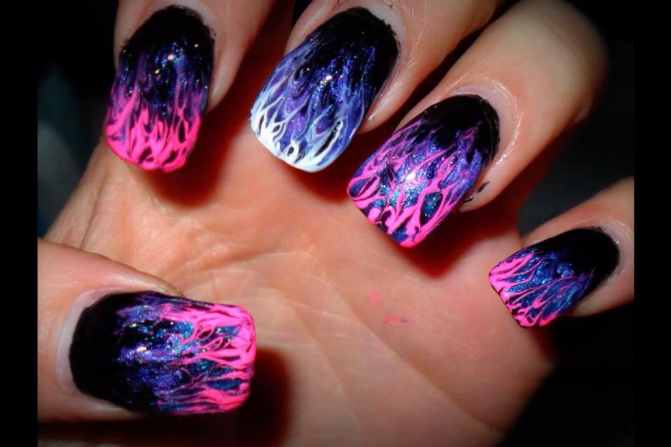2. Add 3-5 drops of purple nail polish. These will be the first layer of flames.