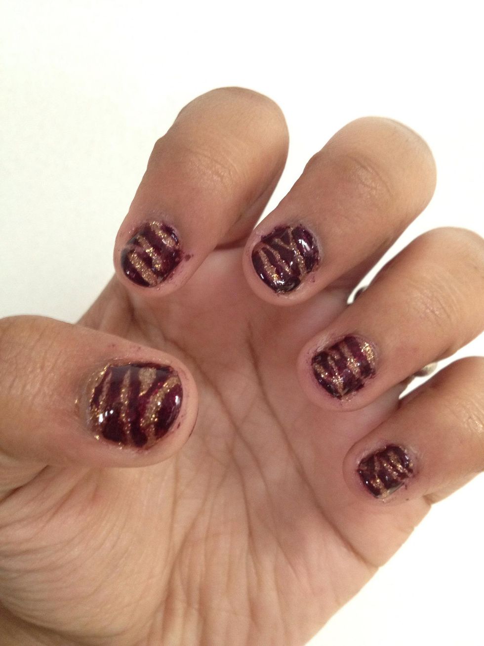 Start off with a base coat. Then apply the base colour. I've used a shimmery bronze colour. But, you can use any shimmery or sparkly colour.