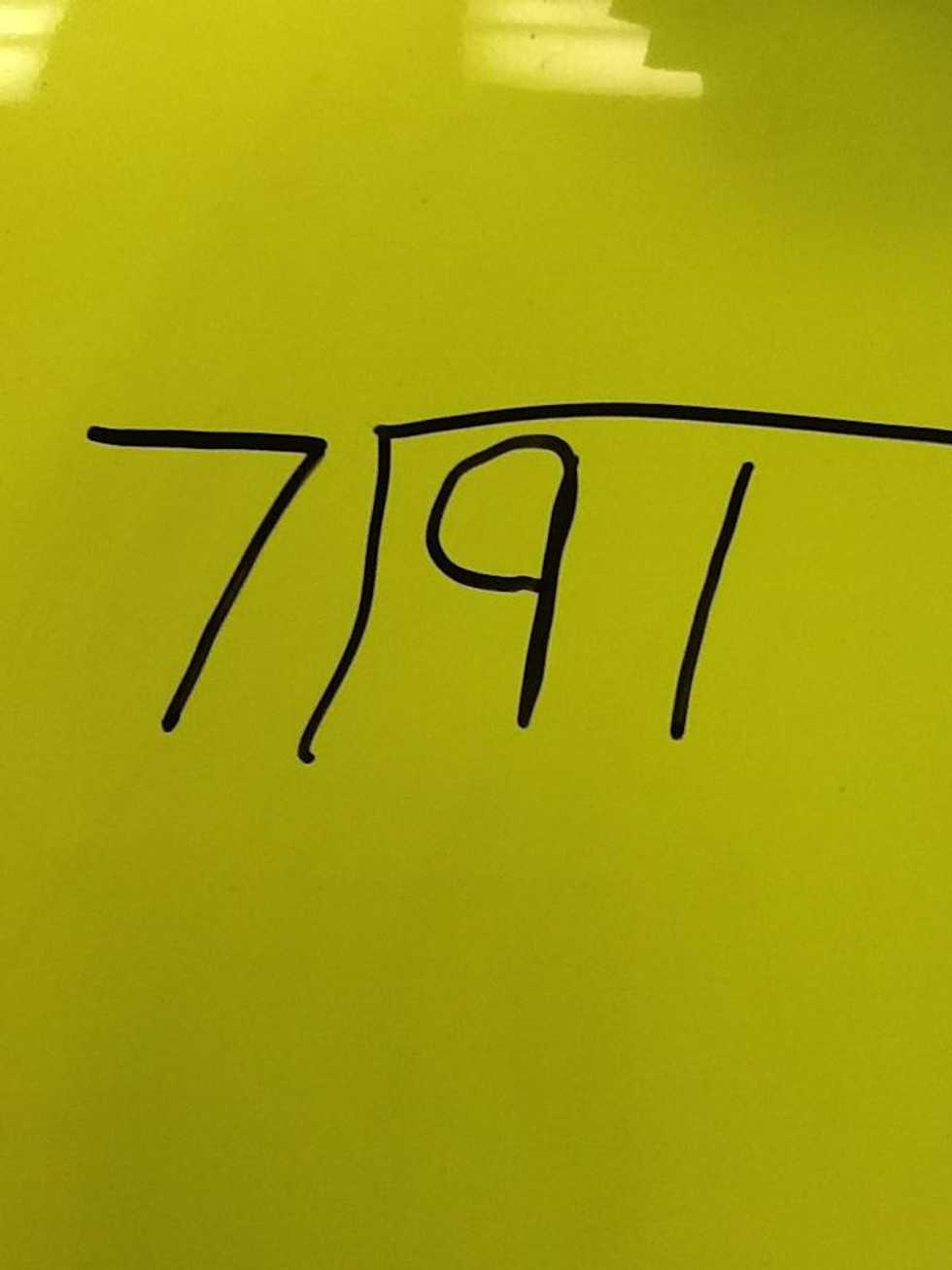 Now you divide 7 into 9 to get 1. Don't forget to put it above the line over the nine.
