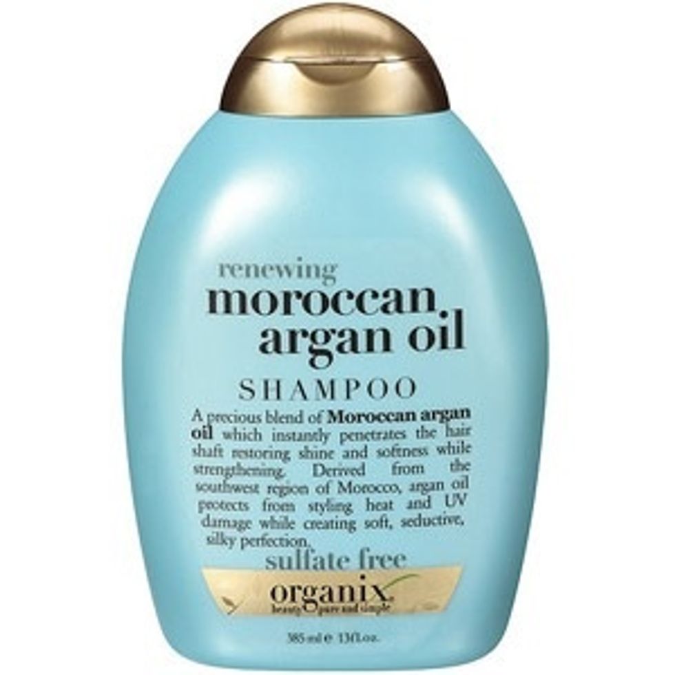 Next, I will use my Moroccan argan oil, taking a penny sized amount and massaging it into the ends of my hair. The picture above says shampoo, but the bottle is the same as the argan oil.
