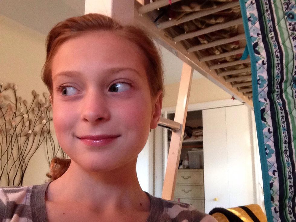So now I go back into my room and let my hair out of the towel and brush it and put a headband in so it stayed out of my way and so it can air dry a little