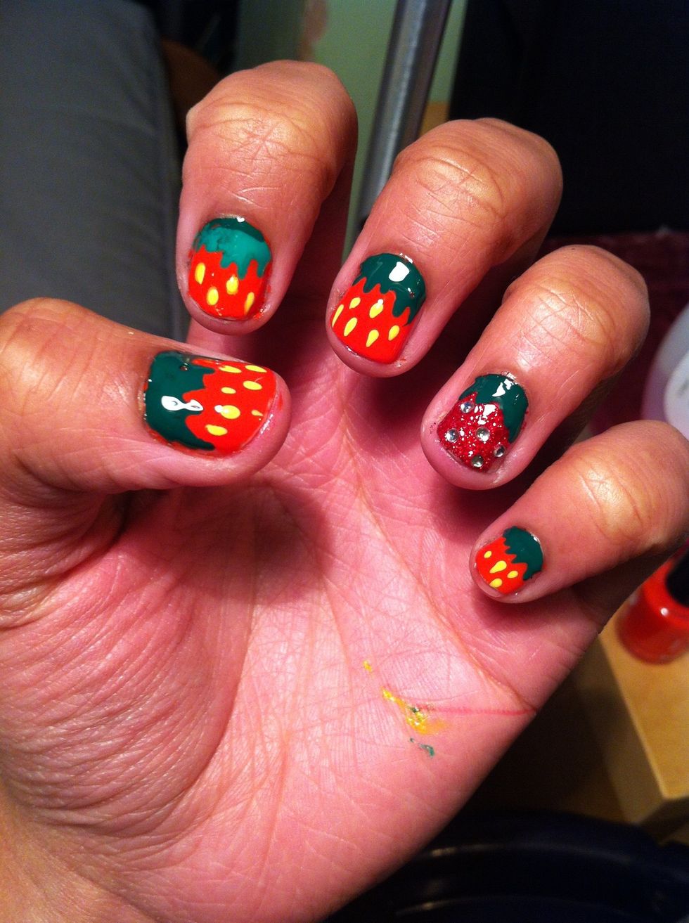 And draw your seeds, you can do them as dots but I do them as tiny lines :) leaving your ring finger out if you have nail gems if you don't, it's all good just carry on