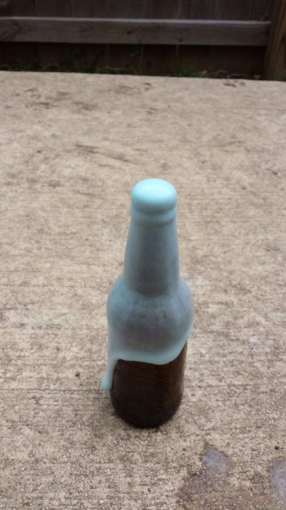 Pour yeast into the bottle with the hydrogen peroxide and food coloring while it's hot