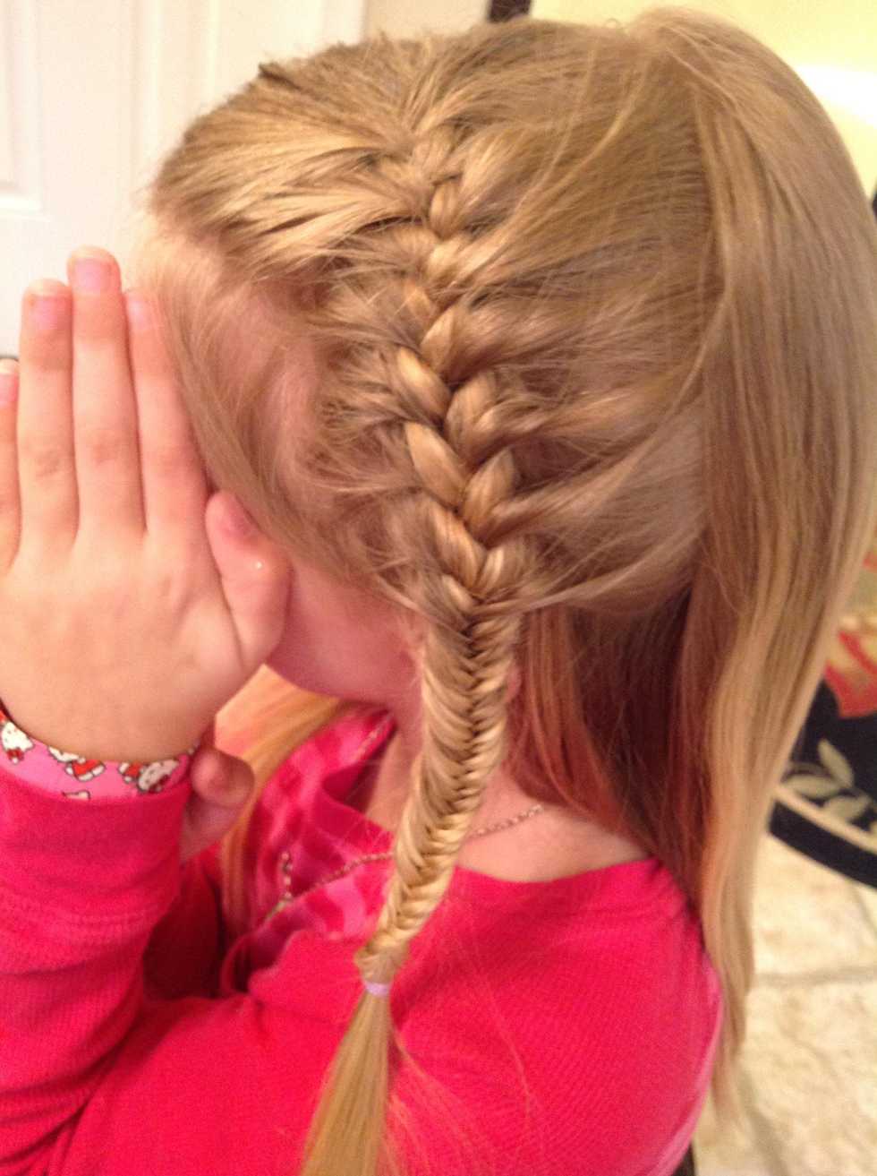 The finished look! It is a little harder to switch into fishtail, and the braid may get a little loose, but it will stay in once you start fishtailing. This hairstyle is more for non-layered hair.
