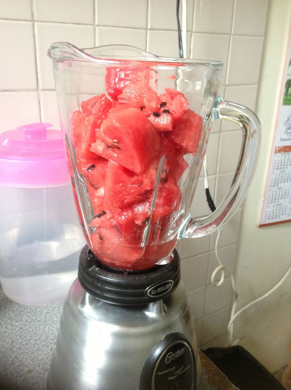 After that add the watermelon at the blender