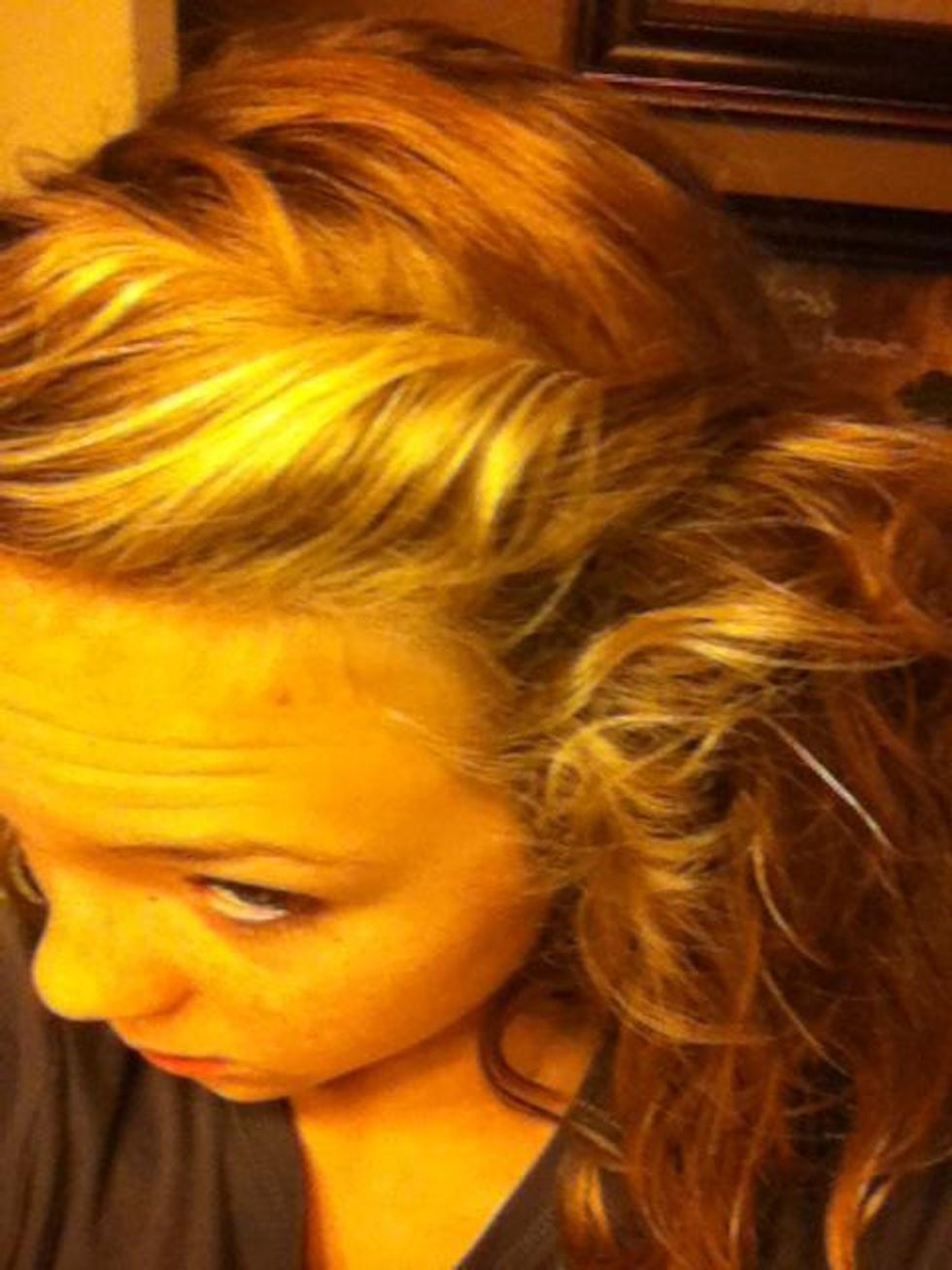 Ok! First you start out with ur regular hair! My hair was curly the night before so it dosent look that great!!