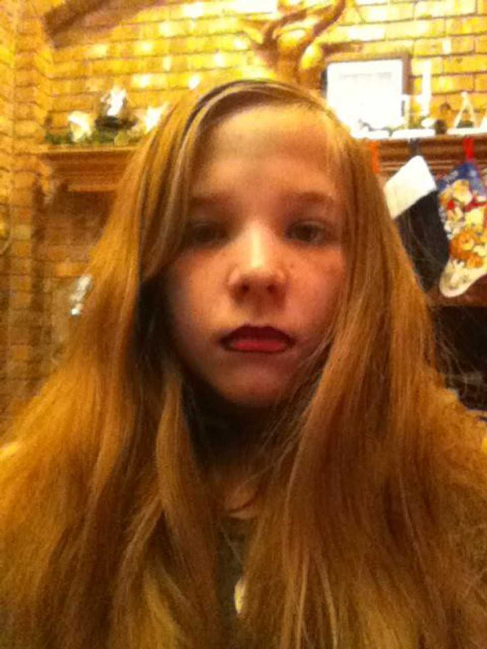Next apply lipstick (dark colors work better if you don't have black lip stick use dark color and the next step will help)