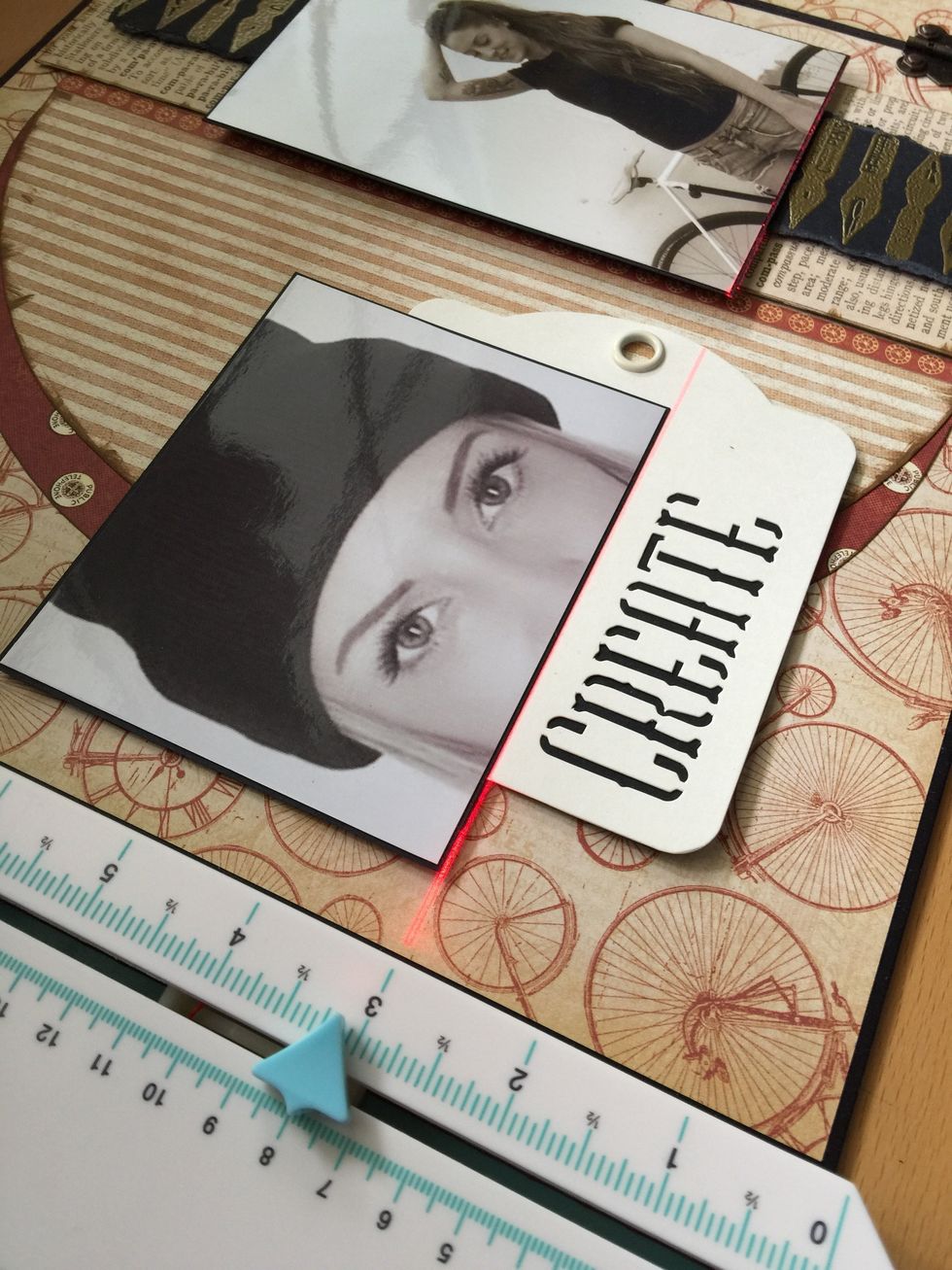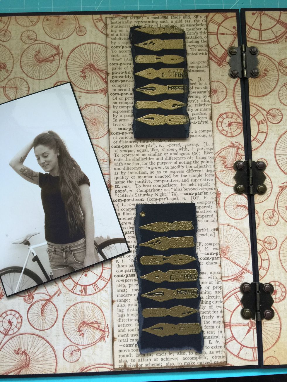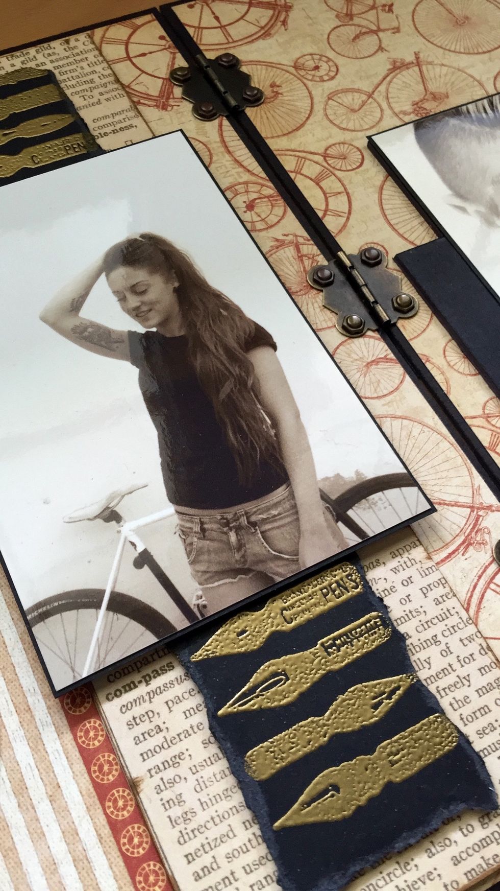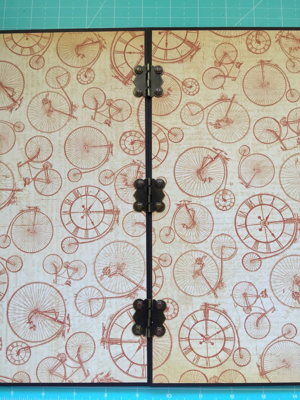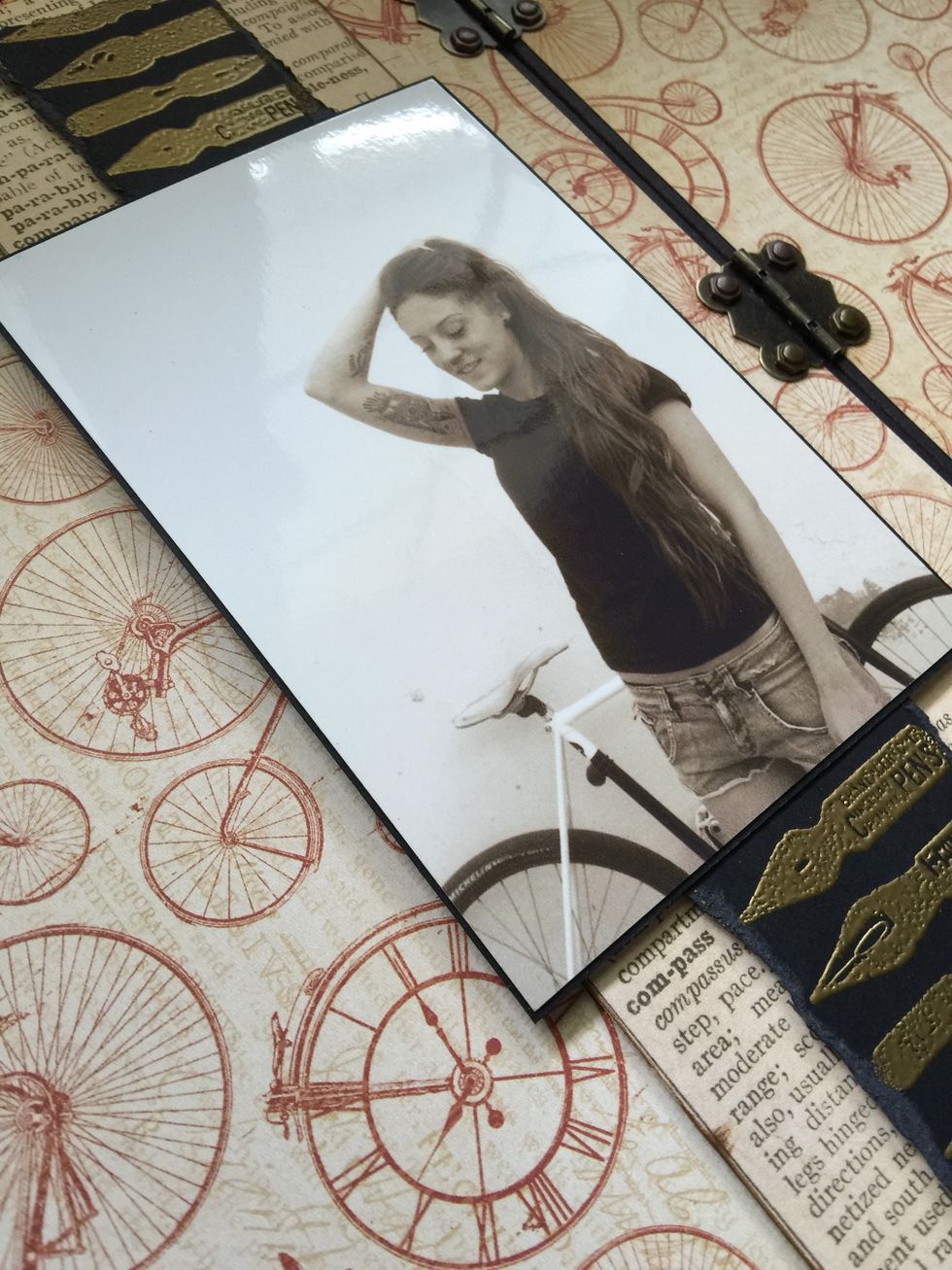 Glue the fussy cut gears and two clocks. Then use some double-sided tape to stick the photo on.