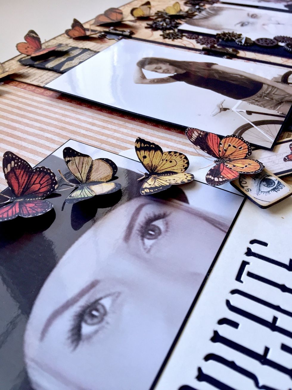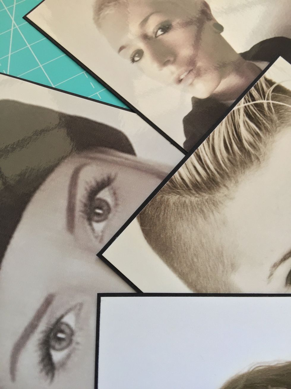 Select your fav photos and two 12x12" black cardboard and two decorated papers to make the background.
