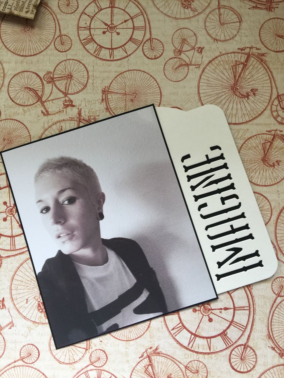 Use double-sided tape to stick another photo on the "Imagine" ivory tag.