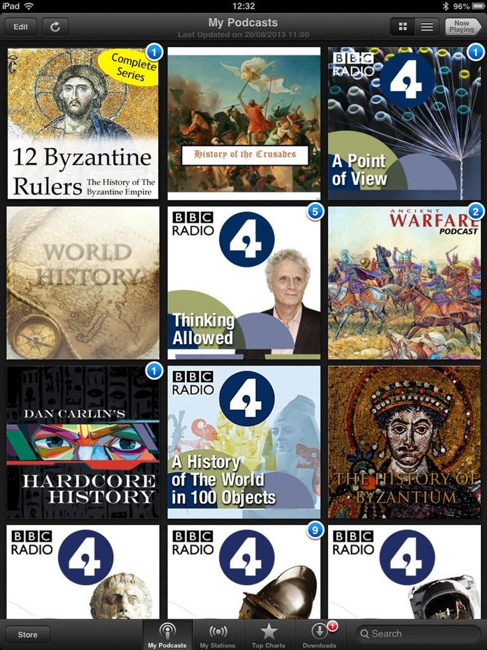 Once you open open the Podcast App, your podcast library will be displayed before you. As you can tell, I am a fan of many history podcasts.