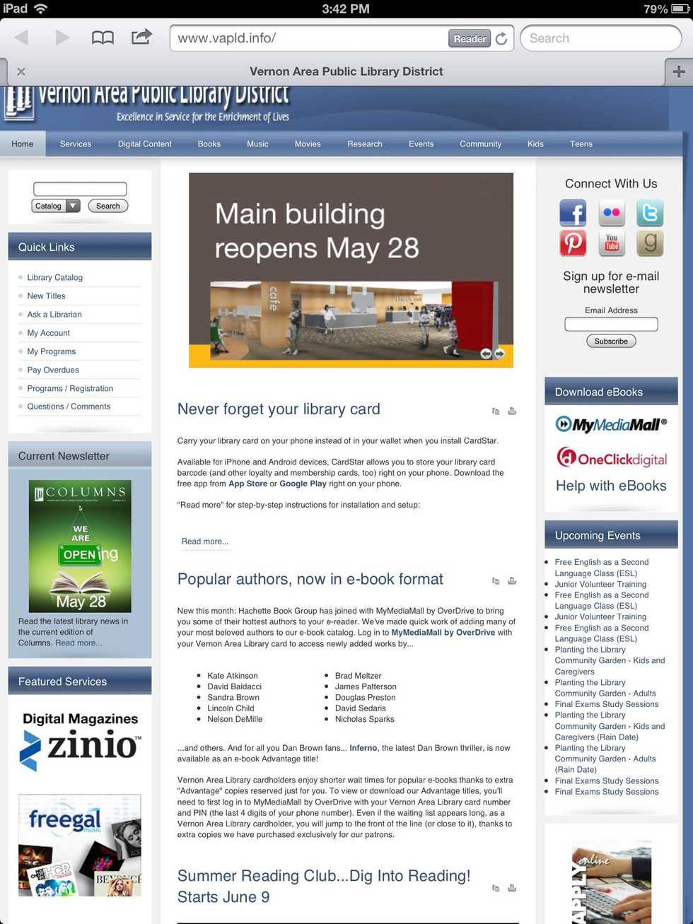 First, visit the Vernon Area Public Library District home page at www.vapld.info. Choose the Music tab and then choose Freegal Music Downloads. Or download the Freegal app to a device.