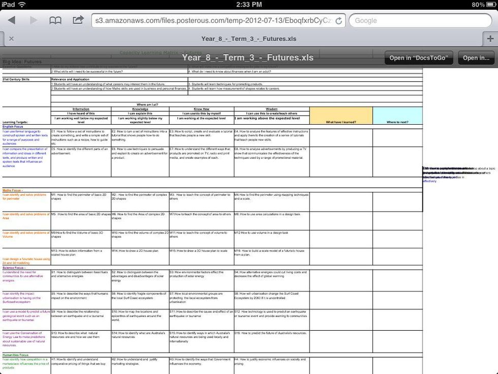8) Press "Open in Docs to Go." Docs to Go should open with a new document, your capacity matrix.Ch