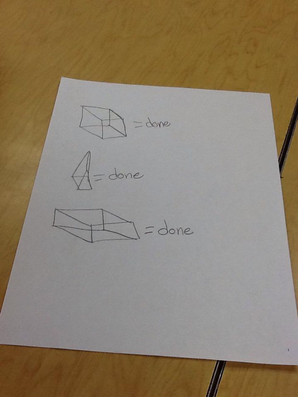 Then with the square and the rectangle, top left hand corner to top left hand corner. With the triangle you just connect the two top points and your done!