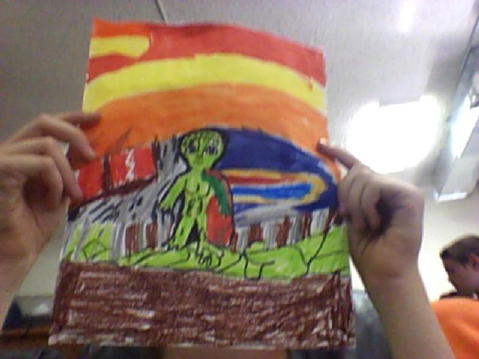 1. Draw a head like this3. Draw arms and legs4. Draw the legs5. Draw the background6. The last step is to color your alien and you're background They end and send me your artwork at: cameronpalpi38@gbstu.org