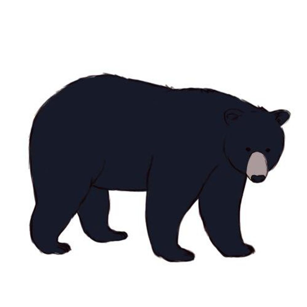 First make the head and snoutThen add the nose and eyes and earsAdd the body,legs and tiny tailThis is what it should look likeNow collor and BAM a black bear
