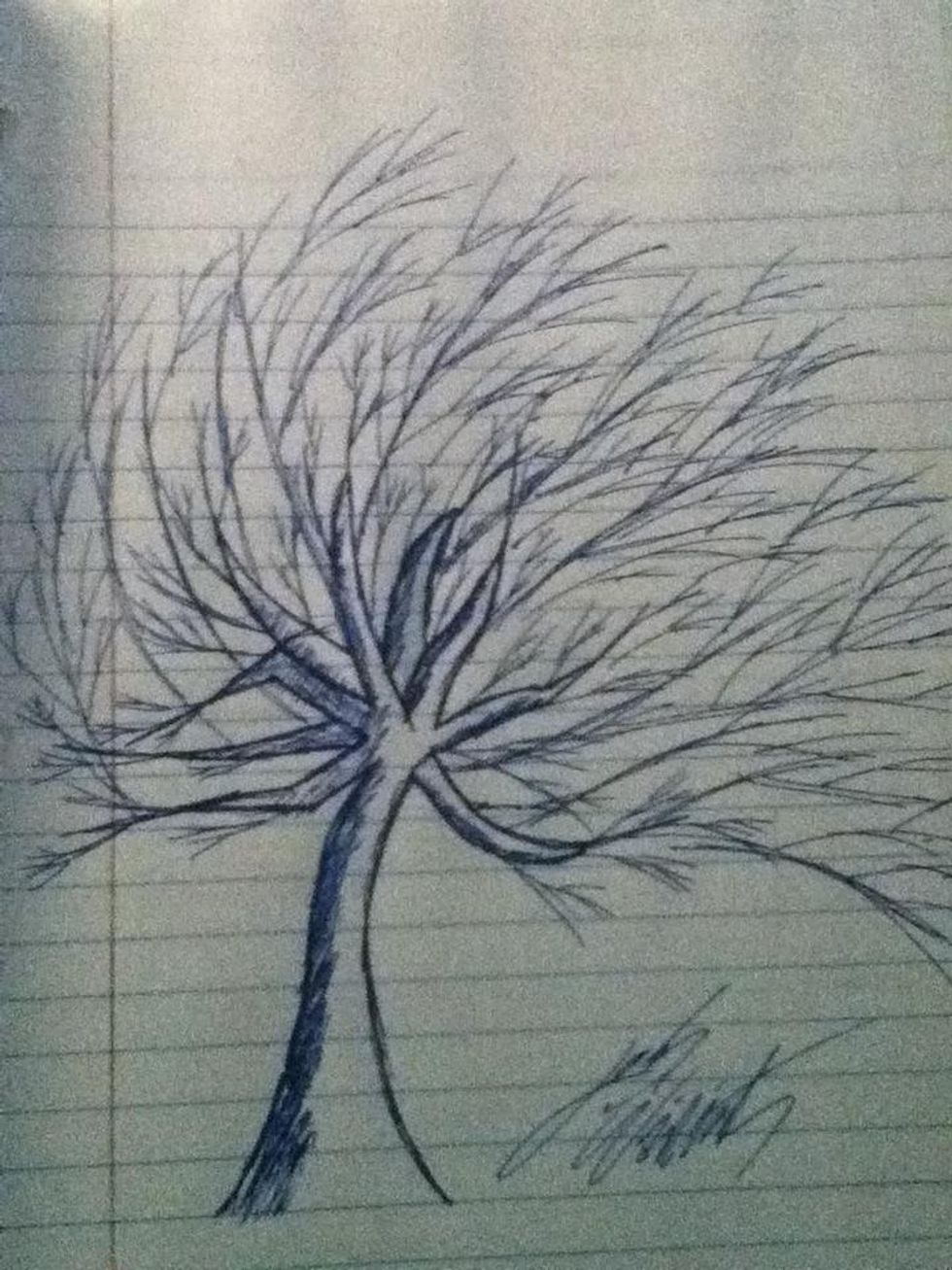 Start by sketching out a trunk. My tree will be leaning, so it is bent to the right.